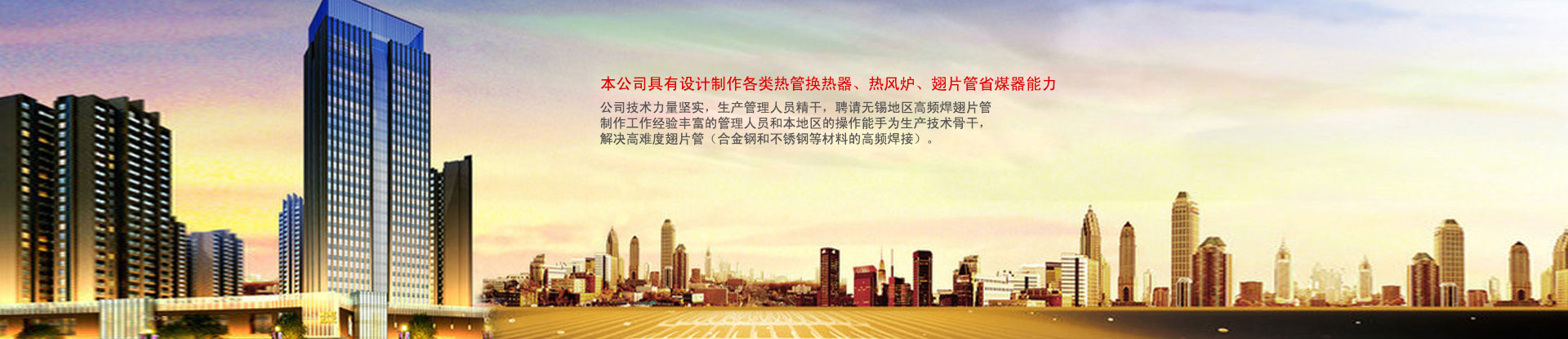 無錫市新寶紅換熱器有限公司 ???????無錫市新寶紅換熱器有限公司位于美麗的太湖之濱,是一家專業生產翅片管,翅片管換熱器,高頻焊螺旋翅片管,熱管式換熱器的廠家。???????本公司技術力量堅實,生產管理人員精干,聘請無錫地區高頻焊翅片管制作工作經驗豐富的管理人員和本地區的操作能手為生產技術骨干,解決高難度翅片管(合金鋼和不銹鋼等材料的高頻焊接),采用國內優良的200kw高頻設備,焊接機構全部采用優良的技術研制而成,具有導電性能強,功率發揮充分,焊著率高及焊接速度快等優點。